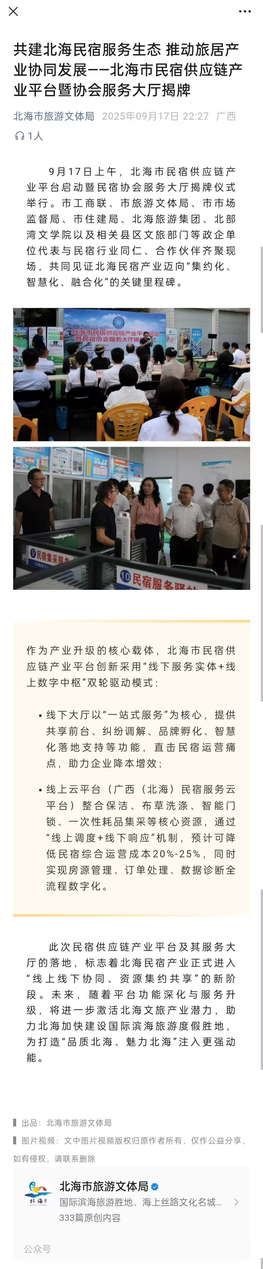 民宿供应链产业平台启动暨协会服务大厅在北海揭牌
