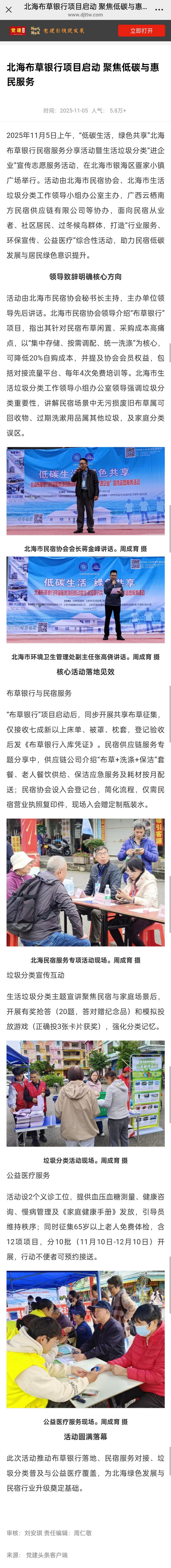 北海布草银行项目启动,聚焦低碳与惠民服务