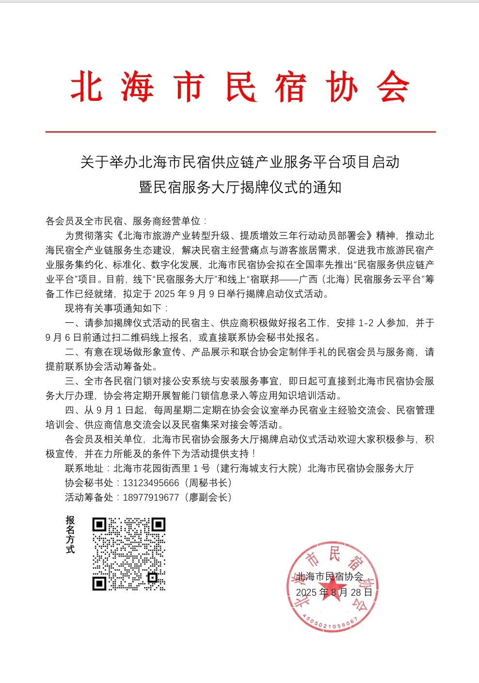 关于北海市民宿服务供应链产业平台项目启动暨民宿服务大厅揭牌仪式活动的通知